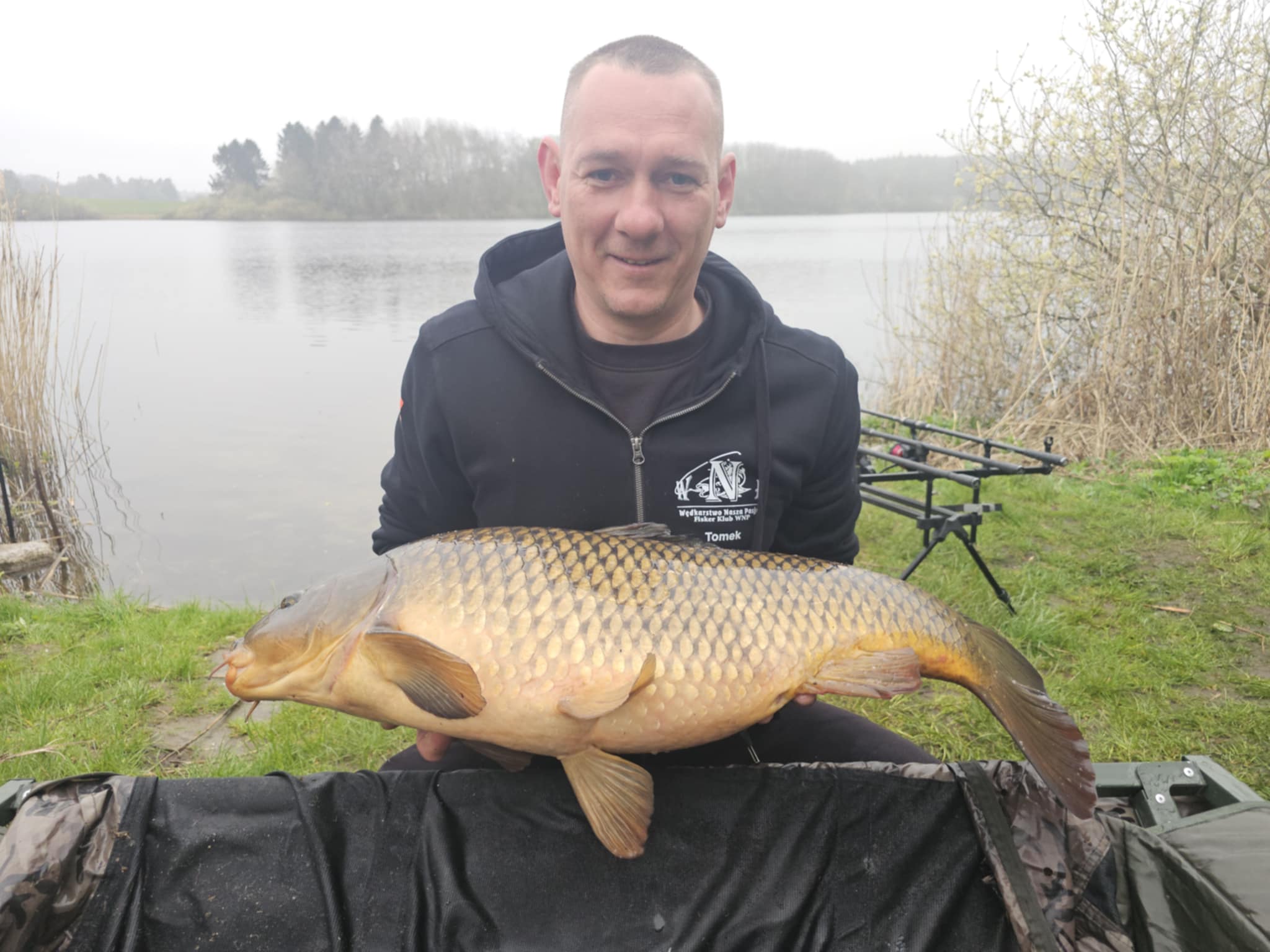 Zacznijmy od Tomasza Kośli pojechał na dużą dziką wodę pierwsza noc nie przyniosła żadnej ryby.Tomasz próbował delikatnie sypać na zestawy i to nie przyniosło żadnego brania. Ale kolejna wywózka już poszła na grube żarełko i to się okazało strzałem w dziesiątke. Ryby wychodziły jak szalone , pojawiły się piękne karpie oraz bardzo duży lin.