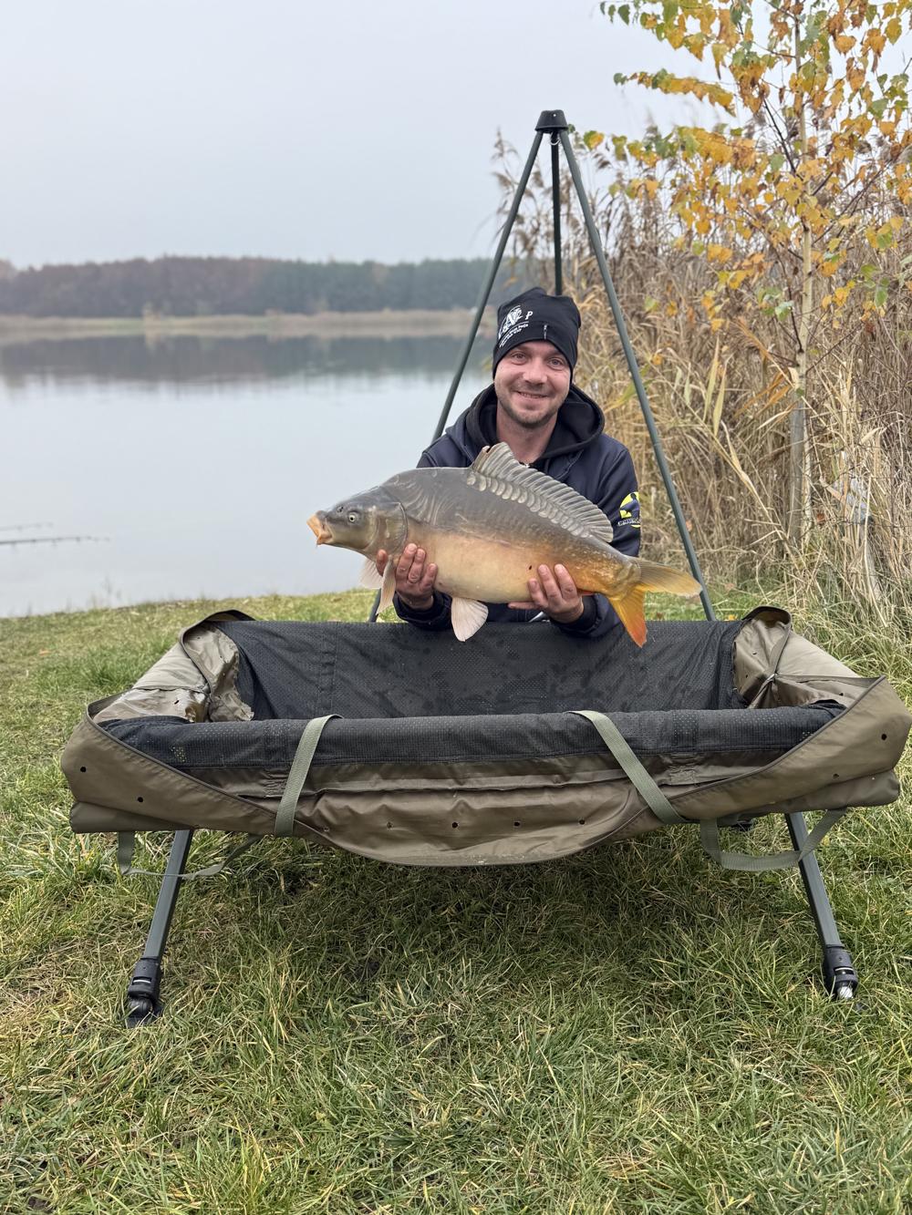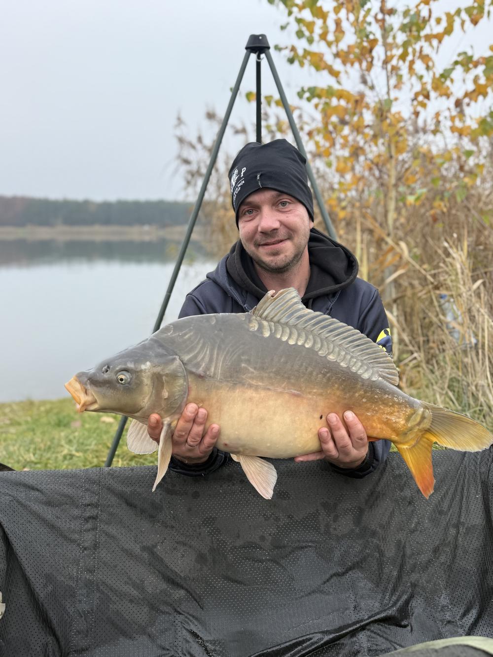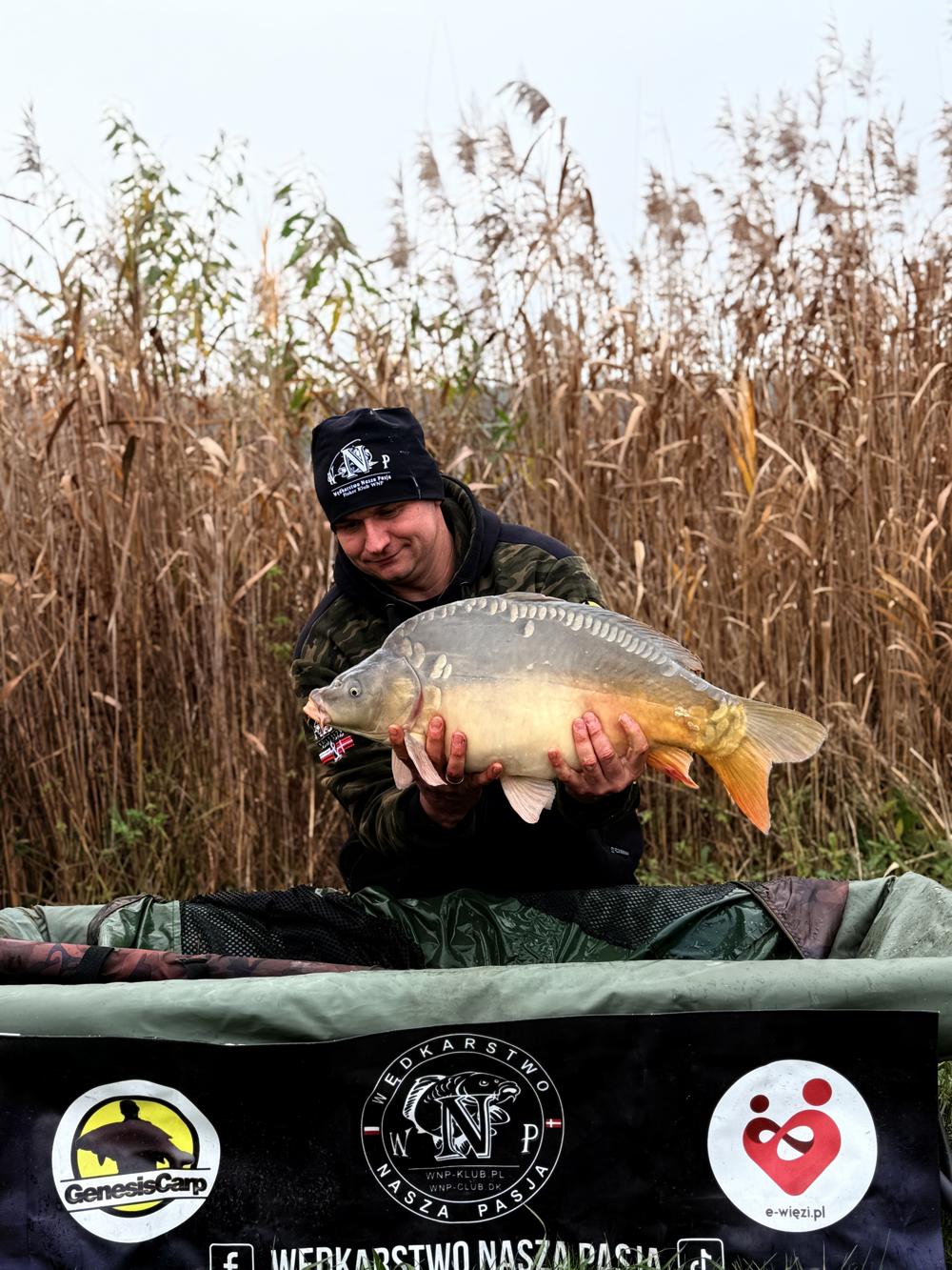 Również reszta ekipy miała na macie piękne ryby pomimo zimnego deszczowego listopada.Jeśli chodzi o Lazurowy Staw Federacja ma go pod opieką około 2 lat i przez dwa lata zrobili dużo dobrego dla tej wody. Postawili domki po jednej stronie na stanowiskach są piękne stoły ławki z zadaszeniem , zarybienia łowiska , są również przewidziane prace przy wysunięciu stanowisk aby było łatwie nam wyjąć rybe. Łowisko ma 10 pięknych stanowisk głębokość jest zróżnicowana od 1 m do ponad 7 metrów, dookoła dużo miejsca oraz zielni . Pozdrawiamy również Jakuba Wieczorka opiekuna tej wody cieszy nas to że ta osoba dba i słucha innych wędkarzy co by można było dodać lub zmienić na łowisku,mega pozytywny człowiek.